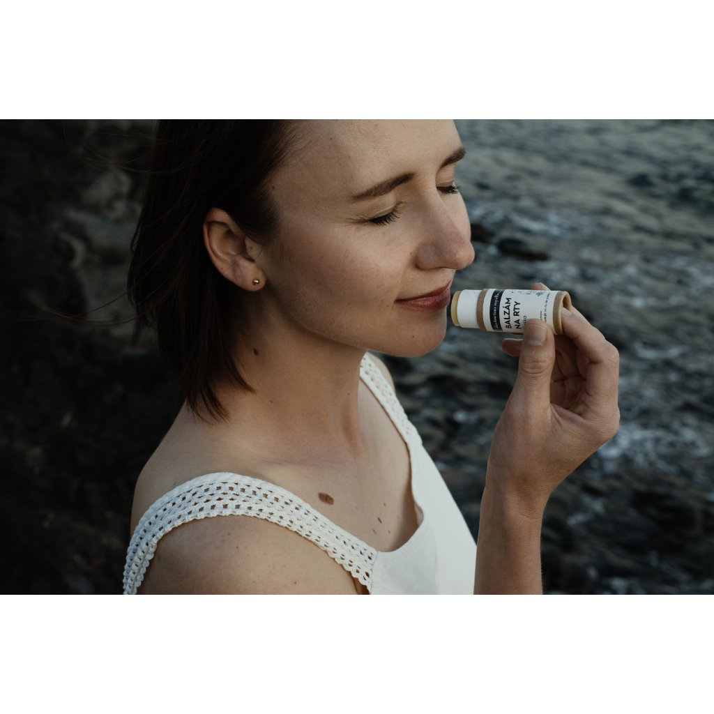 Přírodní balzám na rty je vyroben z vysoce kvalitních za studena lisovaných olejů, včelího vosku a kakaového másla.
