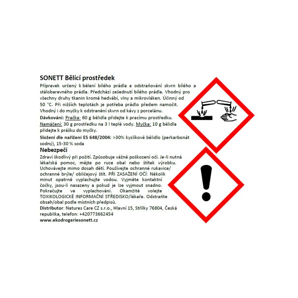 Distributor pro ČR: Sonett, Natures Care CZ s.r.o., Hlavní 15, 76804 Střílky, Natures Care CZ s.r.o., Nádražní 190, 76805 Koryčany, Telefon: +420 733 699 050, email: objednavky@sonett.cz
