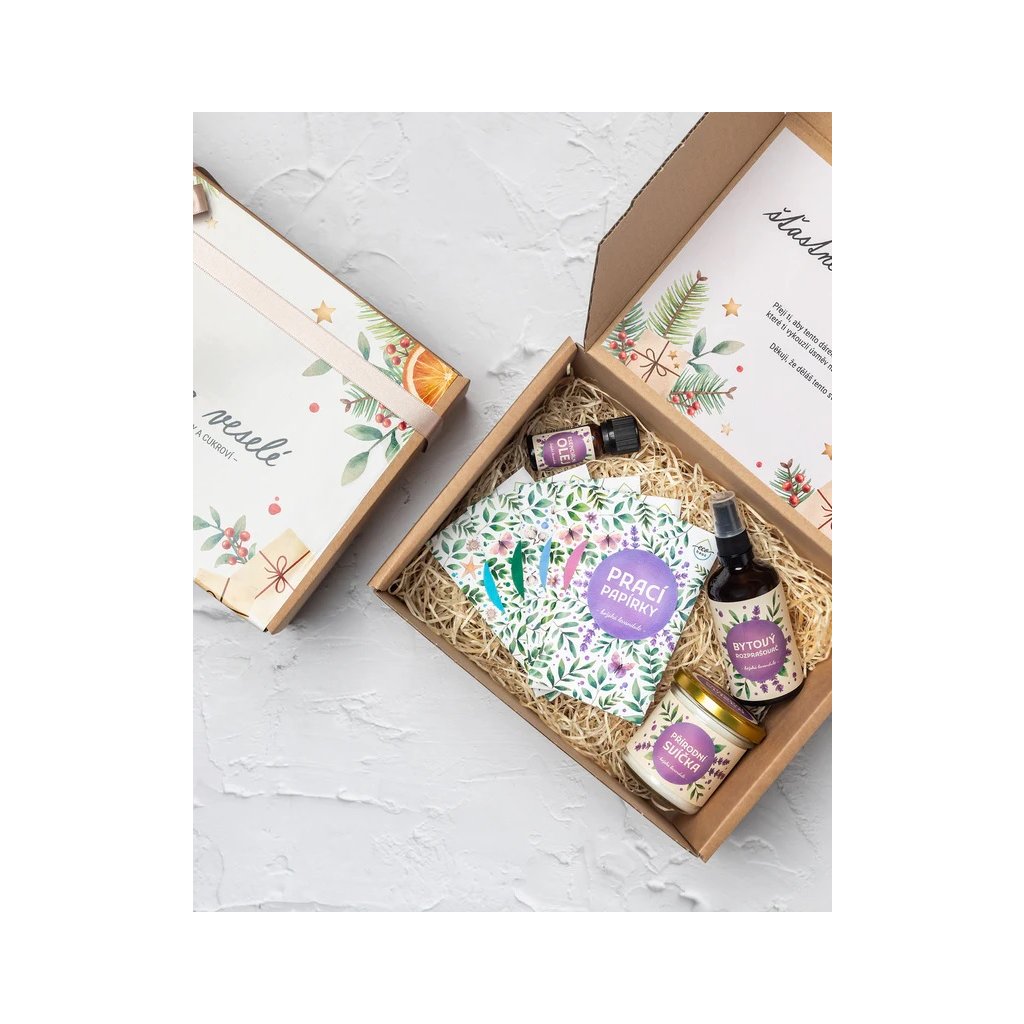 Základy aromaterapie s přírodními pomocníky jako je sojová svíčka, bytový rozprašovač a esenciální olej. Doplněné o ikonickou sadu pracích papírků. Box obsahuje celkem 8 produktů, kterými potěšíte opravdu každou dušičku, která má ráda krásné a nevtíravé přírodní vůně. Na boxu jsou ikonické ilustrace z dílny, obsahují spousty kytiček a při nedávné návštěvě pana prezidenta v Lánech udělali opravdu velké haló! Samozřejmě v tom nejlepším slova smyslu.