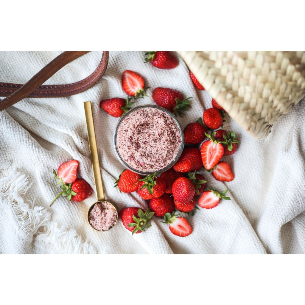 Cukrový scrub na tělo přivolávající radostnou letní atmosféru svou osvěžující sladkou vůní šťavnatých jahod. Je zabalen do ekologického skleněného obalu s kovovým víčkem, který po jeho spotřebování můžete znovu použít.