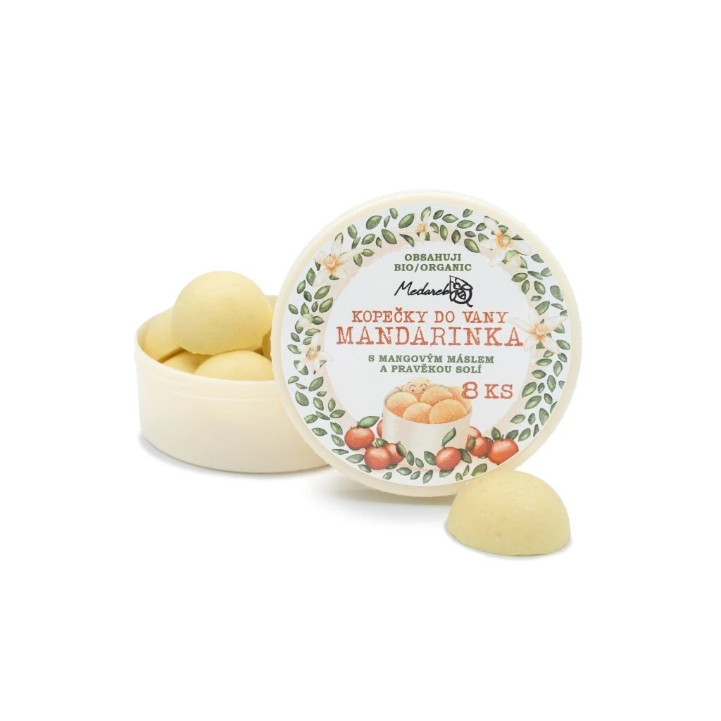 Pečující kopečky do vany s mandarinkovým esenciálním olejem a pravěkou solí.