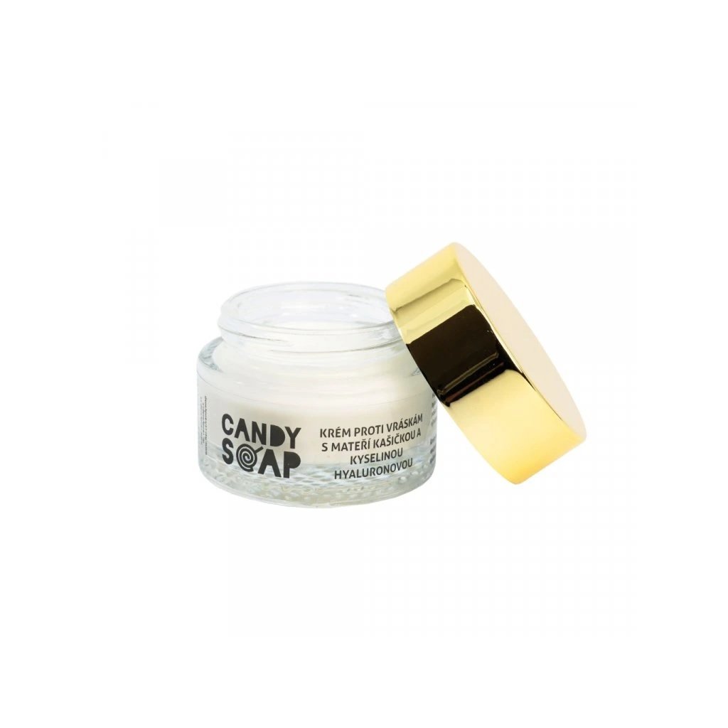 Krém proti vráskám s přídavkem kyseliny hyaluronové, která napomáhá projasnění a zvlhčení pokožky. Současně zjemňuje vzniklé pleťové rýhy a zabraňuje nadměrnému vzniku vrásek. Obsažená mateří kašička navrací pokožce elasticitu a předchází jejímu stárnutí. Krém proti vráskám Candy Soap je vhodný pro všechny typy pleti.
