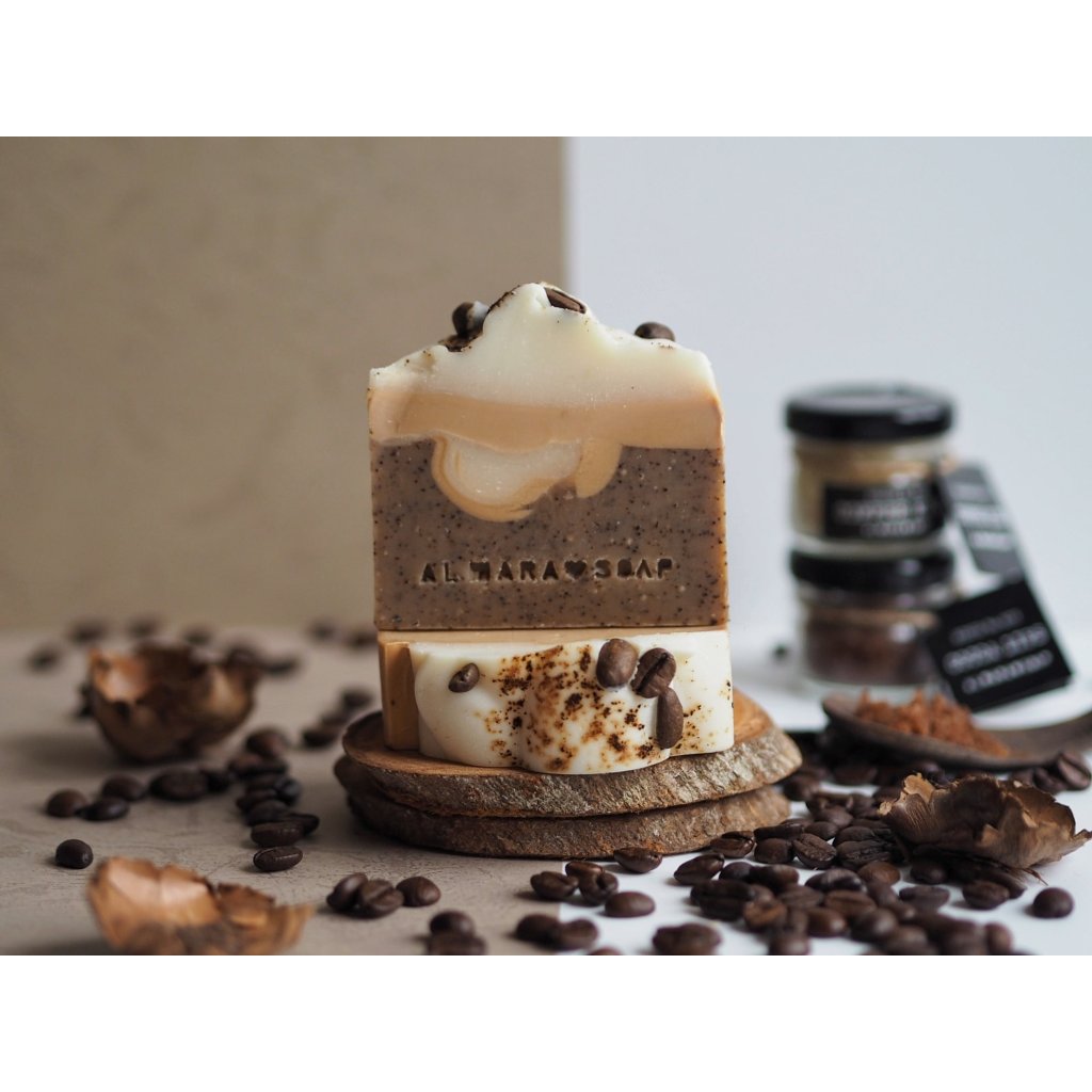 Designové ručně vyrobené mýdlo se sladkou vůní kávy a peelingovým efektem. Výrazná vůně čerstvě připraveného espressa harmonicky se mísící s tóny čokolády, karamelu, hnědého cukru, kokosu a medu.