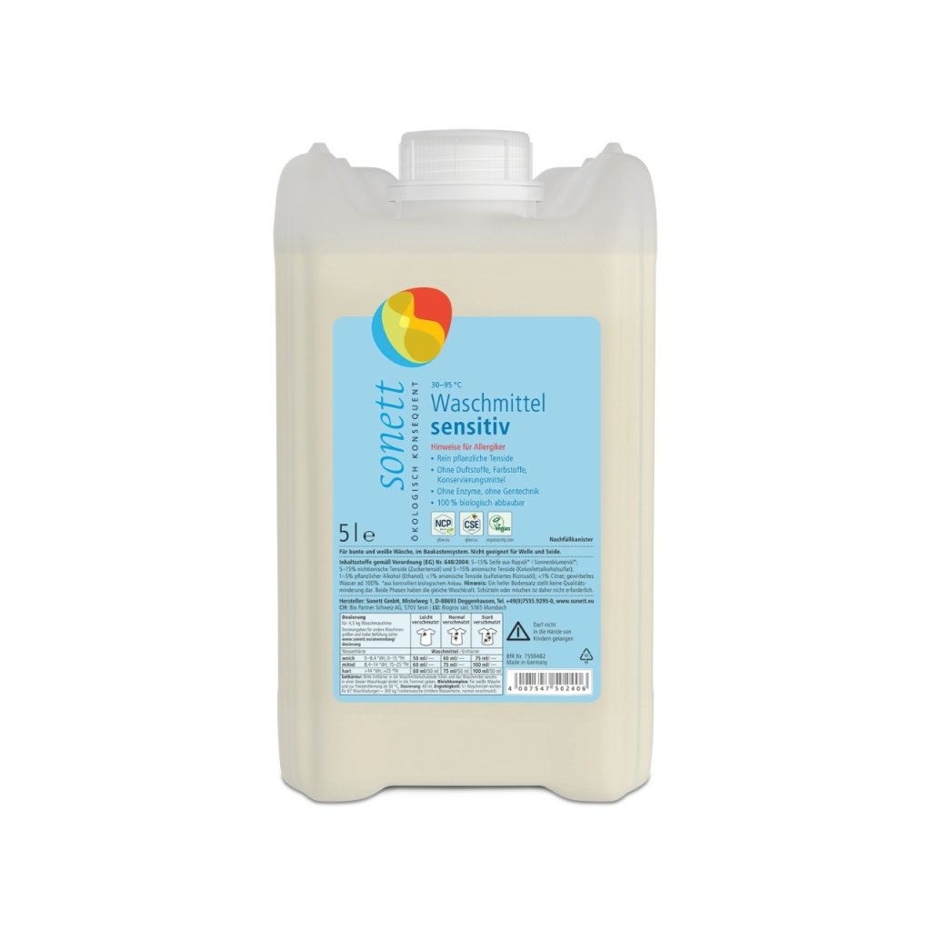Hledáte hypoalergenní, šetrný a ekologický prací prostředek, který dokonale vypere vaše prádlo bez zbytečné chemie? SONETT Prací gel Sensitive je speciálně vyvinutý pro osoby s citlivou pokožkou, miminka a ekzematiky. Neobsahuje žádné éterické oleje, konzervanty, syntetické parfemace ani barviva, a přesto účinně odstraňuje nečistoty a zároveň zachovává měkkost a svěžest prádla.