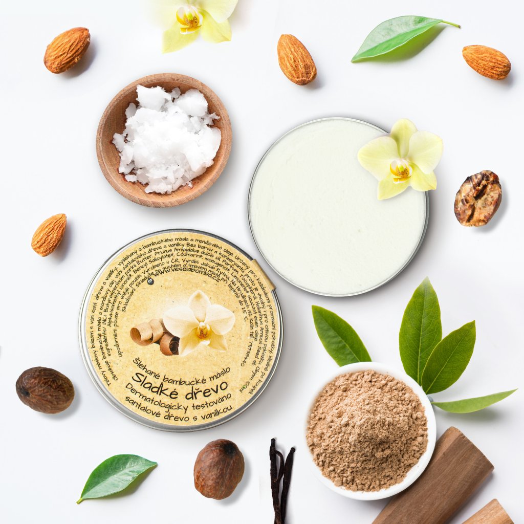Sladké dřevo - šlehané bambucké máslo s vanilkou a santalovým dřevem | Veselá Bomba