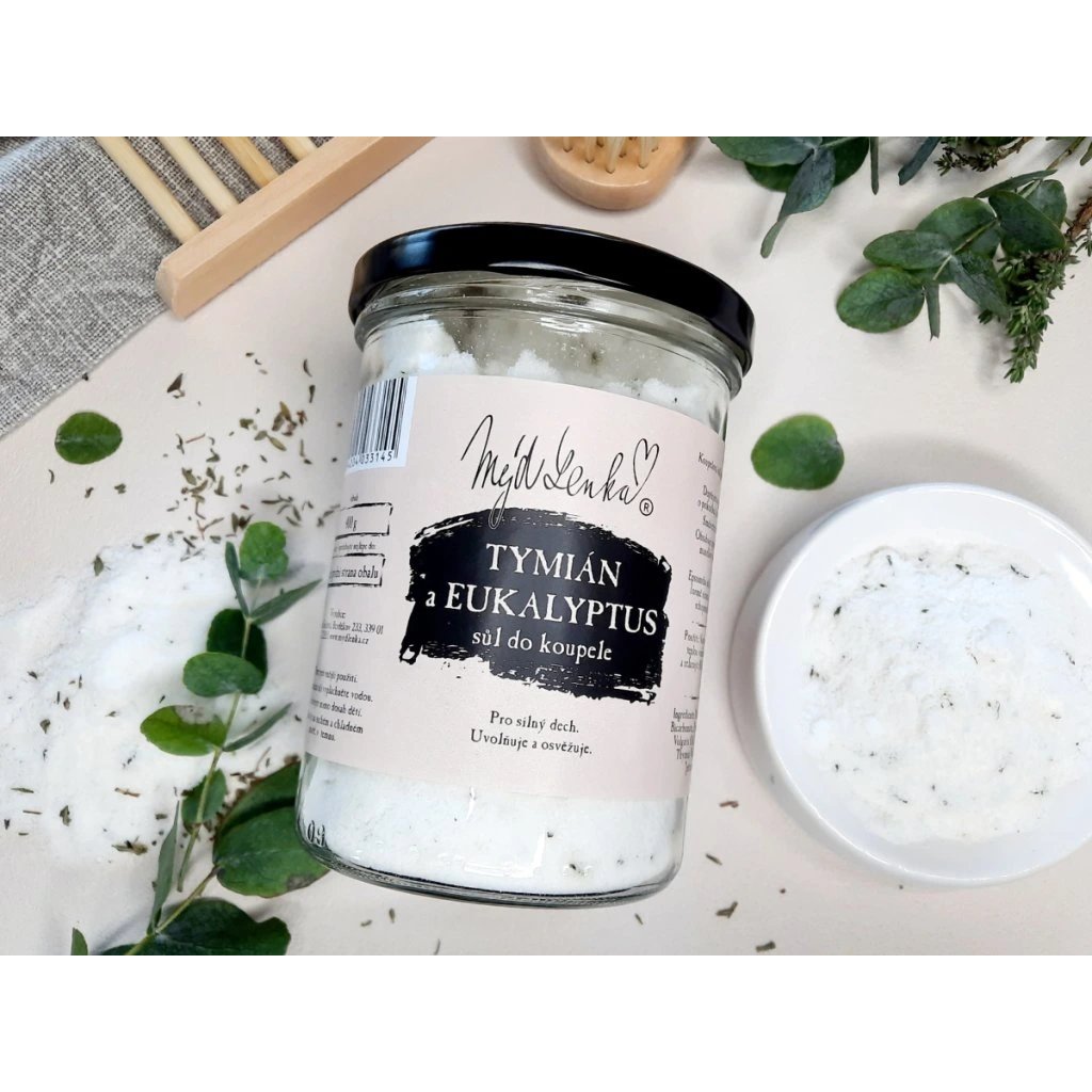 Sůl do koupele Tymián a Eukalyptus - Koupelová sůl pro relaxaci po sportu a námaze a uvolnění dýchání. Dopřejte si ji po námaze, sportu – uvolňuje svalovou únavu a urychluje regeneraci.