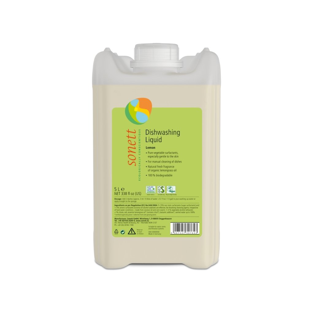 Hledáte přírodní a šetrný prostředek na ruční mytí nádobí, který účinně odstraní mastnotu a zaschlé nečistoty, ale zároveň bude jemný k vaší pokožce? SONETT Prostředek na mytí nádobí kombinuje sílu rostlinných tenzidů s příjemnou vůní BIO éterického oleje z lemongrassu, který dodává osvěžující citrusový nádech.