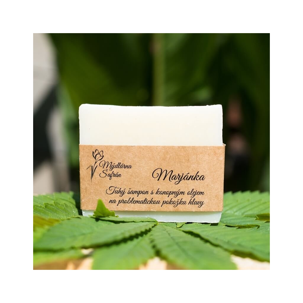 Tuhý šampon s konopným olejem Marjánka (pro oslabené vlasy) | Mýdlárna Šafrán