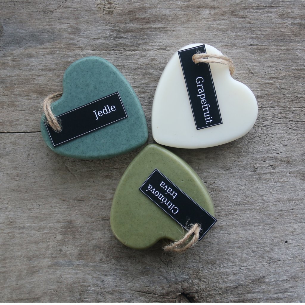 3 ks závěsná srdce k provonění šuplíků, skříní, komod, šatníků i menších místností. Intenzita vůně: Grapefruit - jemná, Jedle - střední, Citrónová tráva - silná