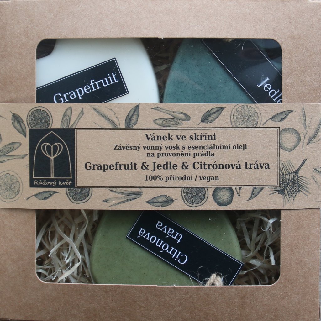 Intenzita vůně: Grapefruit - jemná, Jedle - střední, Citrónová tráva - silná