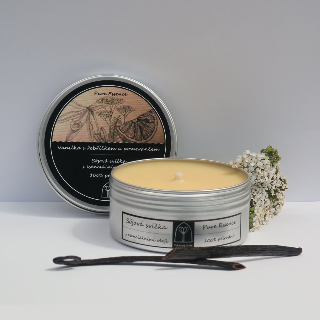 Vonná sójová svíčka Vanilka s řebříčkem a pomerančem 150 ml | Růžový květ