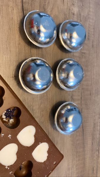 Formu na bomby (Pro začátek, než to dostanete „do ruky“, se dají použít silikonové formy na pečení, na muffiny nebo na vánoční košíčky. Jestli doma žádné takové nemáte, bude vám stačit klidně i vnitřek od bonboniéry nebo použité kapsle do kávovaru.)